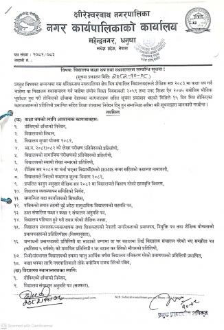 विधालय कक्षा थप तथा स्थानान्तरण सम्बन्धी सूचना !