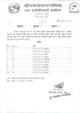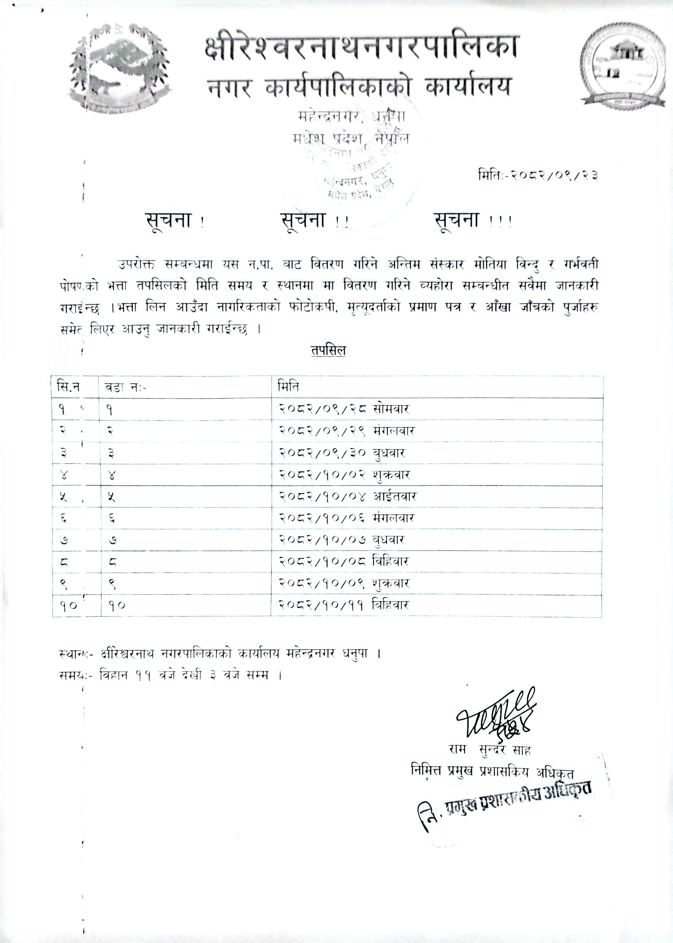 अन्तिम संस्कार माेतिया विन्दु गर्भपाेषण भता वितरण सम्बन्धी सूचना !