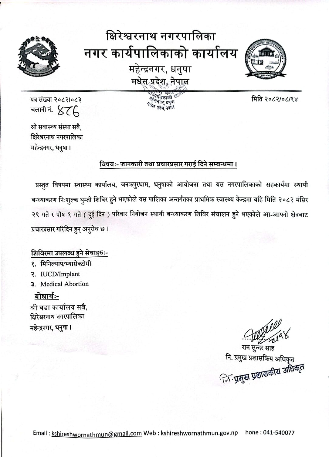 नगर कार्यपालिकाको कार्यालय महेन्द्रनगर धनुषा मधेश प्रदेश