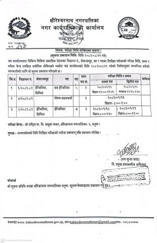 » परीक्षा मिति ताेकिएकाे सूचना !