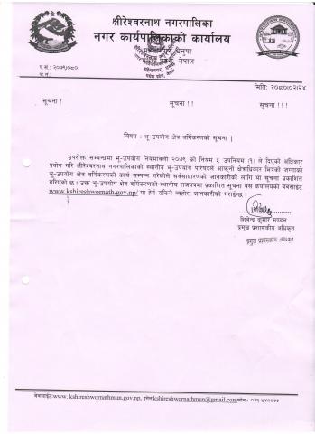क्षीरेश्वरनाथ नगरपालिकाकाे (भू उपयोग क्षेत्र वर्गिकरण गरिएको सूचना)