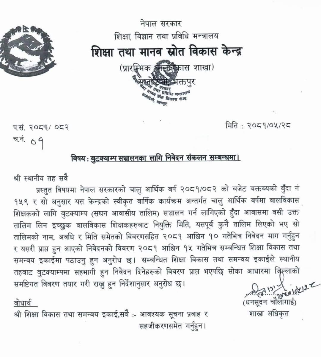 बुटक्याम्प तालिममा सहभागिका लागि निवेदन दिने सम्बन्धमा !