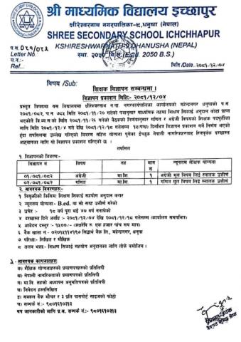 शिक्षण सहयोग अनुदानमा शिक्षक नियुक्तिका लागि विज्ञापन सम्बन्धमा !