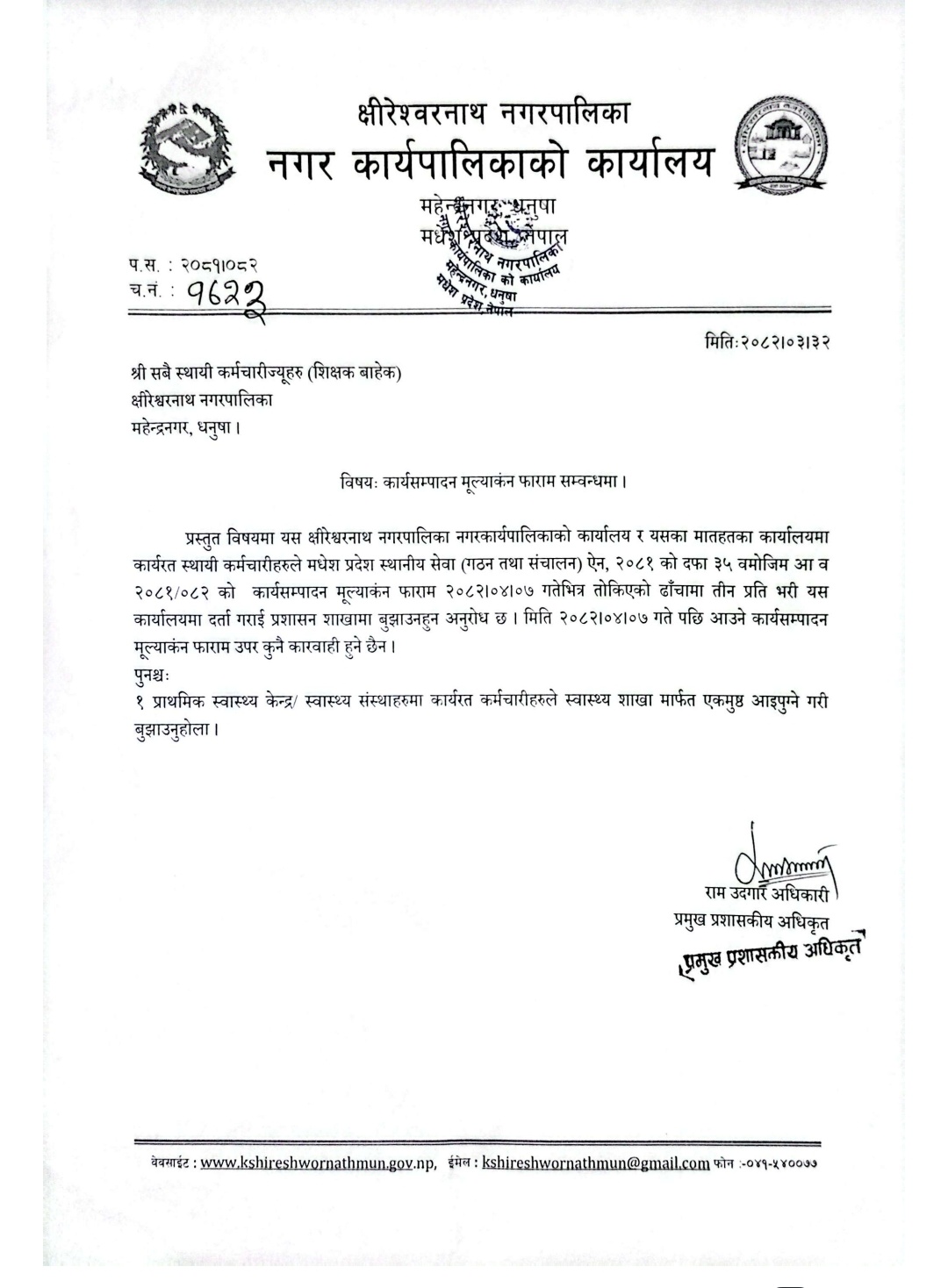 आ व २०८१।०८२ को का.स.मू. फारम भर्ने सम्बन्धी सूचना !
