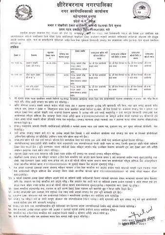 बजार र पोखरी ठेक्का बन्दोबस्ती सम्बन्धी ७ (सात) दिने सूचना