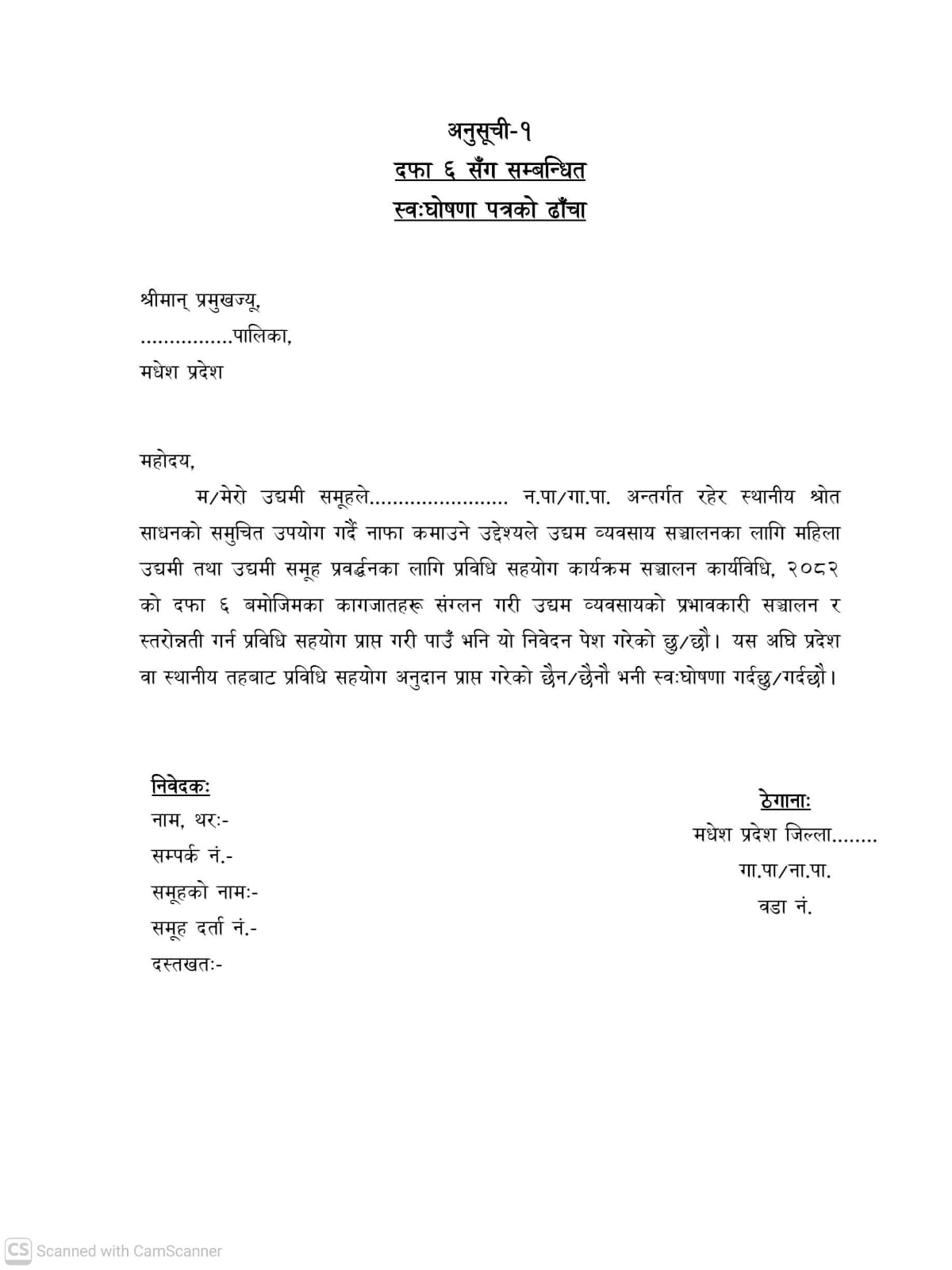 निवेदनको ढाँचा