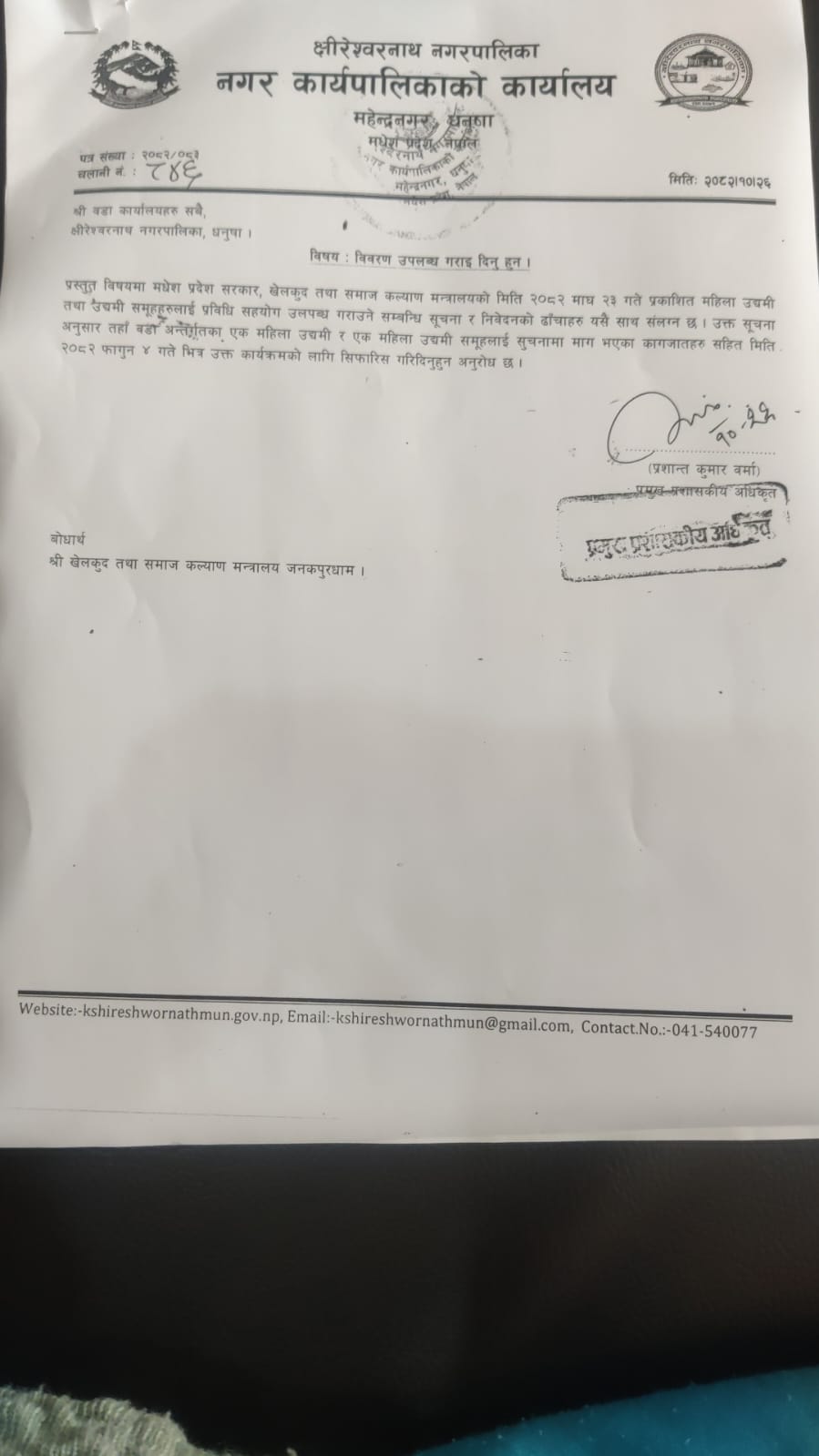 नगर कार्यपालिकाको कार्यालय महेन्द्रनगर धनुषा मधेश प्रदेश