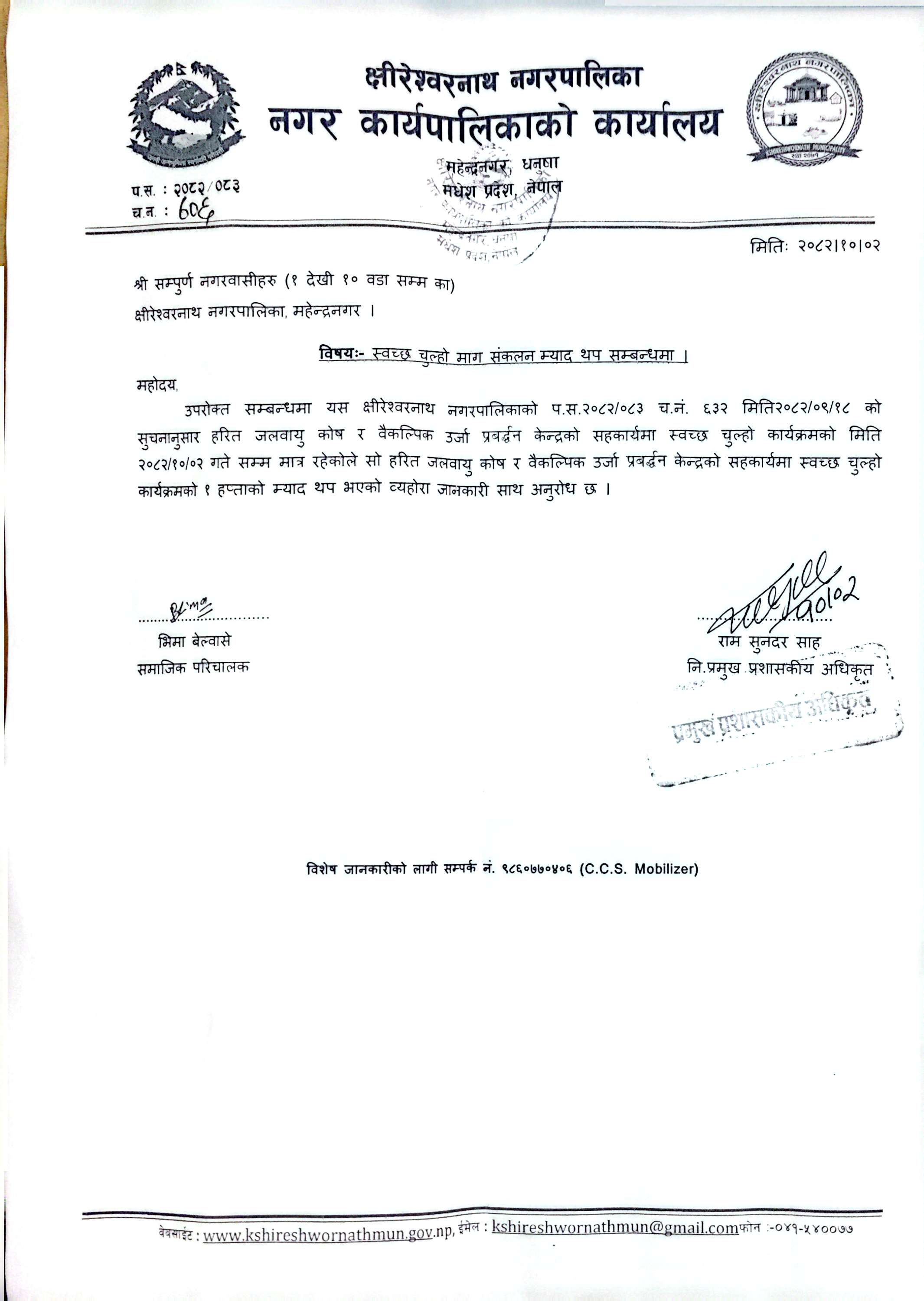 स्वच्छ चुलाे म्याद थप सम्बन्धमा !